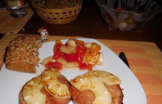 zutaten_2sp"> Zutaten für Personen Rezept mit Bild: Kasslersteak mit Ananas Bild einstellen 4 Scheiben Kasseler 4 Scheiben Ananas Konserve 60 g Johannisbeergelee, rot 2 TL Dijon Senf Rezept Zub [...]