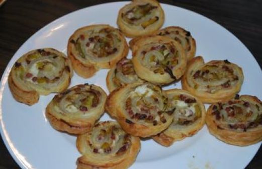 zutaten_2sp"> Zutaten für Personen Rezept mit Bild: Lauch-Schinken-Schnecken Bild einstellen 1 Rolle Blätterteig aus dem Kühlregal 200 g Porree 1 EL Olivenöl 50 g Schinkenwürfel 125 g Crème fraîche P [...]