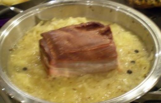 zutaten_2sp"> Zutaten für Personen Bild einstellen 400 g Geselchtes, hell geräuchertes Wammerl oder Bauchspeck 250 g Sauerkraut, am besten bei einem Gemüsehändler kaufen, der Sauerkaut noch selber einlegt 150 ml Wasser 1 kleiner A [...]
