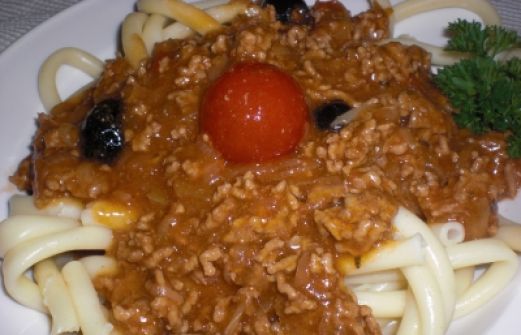 Menge Zutat 500 g Hackfleisch vom Hirsch 100 g entsteinte, schwarze Oliven 300 g Wildfond 200 g Rotwein etwas Salz etwas Pfeff [...]