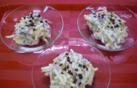 Menge Zutat 4 St Äpfel 200 g Kokosmilch 1 Pk Bourbon-Vanillezucker 4 cl Batida de Coco 2 EL fein gehackte Schokolade oder Schokoladendekor [...]