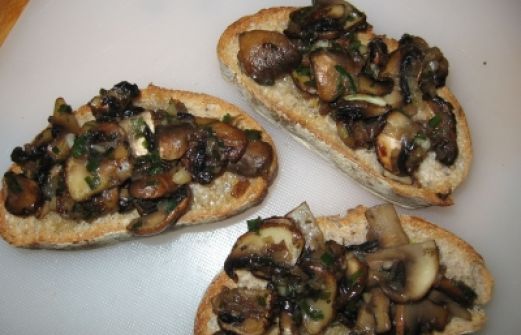 Menge Zutat 8 Schb Weißbrot (Baguette) 250 g Champignons in dünne Scheiben geschnitten 2 EL Olivenöl 4 St Frühlingszwiebeln in feine Ringe geschnitte 2 St K [...]