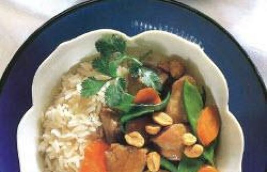 Portionen : 4 450 g Schweineschulter oder -hüfte 4 EL Rohrzucker 4 EL Sojasauce 2 EL Speisestärke 4 mittelgroße Karotten 100 g Zuckererbsen 4 EL Öl 175 ml Hühnerbrühe 3 EL geröstete Erdnüsse Zub.: 20 Min. | Kochzeit: 25 Min. 1. Das Fleisch in 2,5 [...]