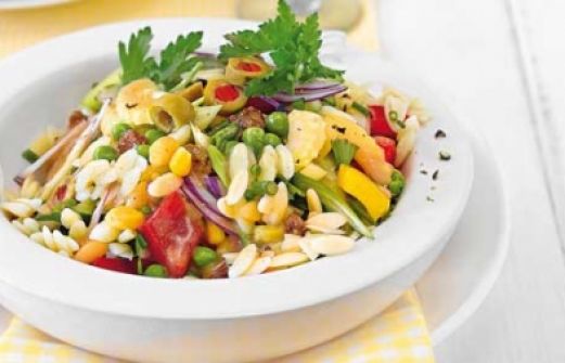 Menge Zutat 480 g griechische, reisförmige Nudeln (Risoni) Salz 5 EL Essig 2 TL Senf 1 TL Zucker Pfeffer 15 [...]