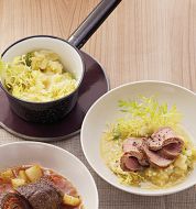 Menge Zutat 4 kleine Fenchelknollen oder entsprechend viel anderes Gemüse wie Karotten Wirsing Lauch Chicoree Paprika etc. 1 Tasse Gemüse- oder Fleischbrühe e [...]