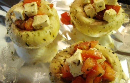 Menge Zutat 8 Stück Riesenchampignons, 3 EL Olivenöl, gemischte italienische Kräuter ( kleingeschnitten ), 150 g Fetakäse, 2 Stück Knoblauchzehen, 2 Stück große feste Tomaten ( entkernt ), Salz, frisch gemahlener schwarzer Pfeffer class="rezept-zub [...]