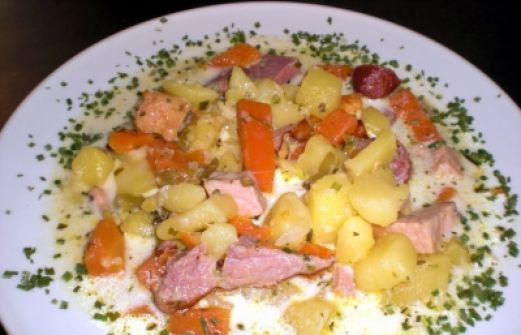 Menge Zutat 500 g Möhren 500 g Kartoffeln, festkochende Sorte 150 g grüne Bohnen a.d. Glas 2 Bund glatte Petersilie 1 l kräftige Rindfleischbrühe [...]