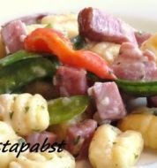 Menge Zutat 2 Pck Gnocchi (Fertigprodukt, à 400 g) Pfeffer 1 St Zwiebel 2 Knoblauchzehe 1 EL Olivenöl 600 g Kirschtomaten [...]