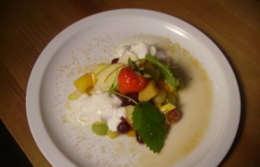 Obstsalat mit angefrorenem Joghurt