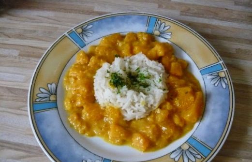 Süßkartoffelcurry mit Mandarinen - dazu Reis