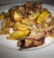 Portionen : 2 400 g Leber vom Rind oder Schwein, in Streifen geschnitten oder vom Metzger bereits schnetzeln lassen 2 EL Mehl Fett für die Pfanne 2 große Zwiebeln, fein gehackt 250 g Champignons 2 Tomaten 1 Knoblauchzehe, gehackt Pfeffer Majoran Salz 2 EL Wei [...]