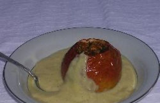 Portionen : 4 Vanillesauce: 3 Eigelb 3 EL Zucker 1 EL Speisestärke 350 ml Milch, mehr nach Geschmack 1 Vanilleschote Bratäpfel: 4 große Äpfel 115 g Zucker ½ TL Zimt 240 ml naturtrüber Apfelsaft Zub.: 20 Min. | Kochzeit: 1 Std. 10 Min. 1. Fü [...]