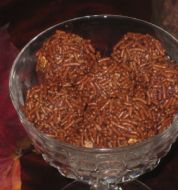 Portionen : 24 175 g Milchschokolade, gehackt 200 g Zucker 3 EL Zuckersirup 125 ml Rum 450 g Waffeln mit Vanillegeschmack, zerkrümelt 125 g gehackte Walnüsse (optional) Für die Verzierung: (Auswahl) Puderzucker gemahlene Nüsse Hagelzucker Zub.: 25 Min. [...]