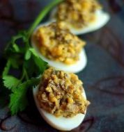 Portionen : 12 6 Eier 60 ml Mayonnaise 1 Dose (125 g) Krabben, abgespült und abgetropft 2 EL Frühlingszwiebeln, fein gehackt 1 EL frischer Dill, fein gehackt und mehr zum Garnieren 1 EL Limettensaft 2 TL Dijon-Senf ein Spritzer scharfe Pfeffersauce oder Chilis [...]
