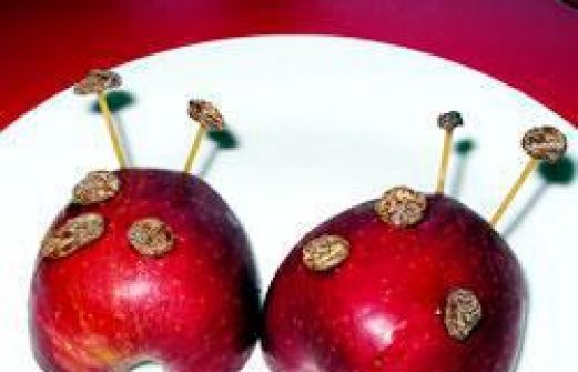 Ergibt : 4 2 rote Äpfel Rosinen 1 EL Erdnussbutter 8 Salzstangen Zub.: 10 Min. 1. Äpfel halbieren und das Kerngehäuse mit einem Messer herausschneiden. Man kann auch einen Apfelausstecher verwenden - dann zuerst das Kerngehäuse herausstechen und dann den Apfel hal [...]