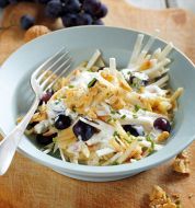 Portionen : 4 150 g Sellerieknolle Saft von 1 Zitrone (ca. 4 EL) 2 säuerliche Äpfel, z.B. Granny Smith 2 EL Zucker 4 EL Mayonnaise 1 TL Currypulver 2 EL Naturjoghurt Salz frisch gemahlener weißer Pfeffer 1 Spritzer Worcestershiresauce 2 nicht zu reife [...]