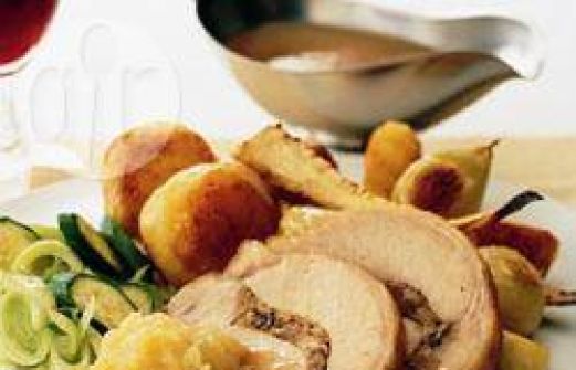 Portionen : 6 900 g Schweinerücken, Haut und Fett entfernt 3 Äpfel 1 kleine Zwiebel, fein gehackt 75 g getrocknete Pflaumen, flein gehackt 75 g Ingwerkekse, ersatzweise einfache Vollkornkekse und eine ¼ TL Ingwerpulver, zerstoßen 1 Eigelb 300 ml Hühnerbrühe 200 ml tro [...]