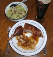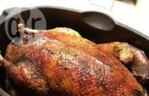 Portionen : 4 1 ganze Ente Salz Pfeffer 1 EL Majoran Füllung: 300 g Schweinehackfleisch oder durch den Fleischwolf gedrehtes Putenfleisch 200 g Hühnerleber, fein gehackt 1 mittelgroße Zwiebel, gehackt 1 Ei 1 Bund frische Petersilie, gehackt 1 TL Muska [...]