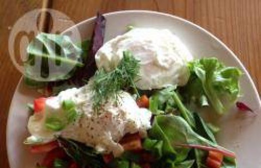 Portionen : 2 2 Handvoll geputzten gemischten Blattsalat 1/4 rote Paprika, gewürfelt 1 Tomate, in Spalten geschnitten 1 Frühlingszwiebel, in Scheiben geschnitten 4 Eier ein Schuss Essig Salz Für das Dressing: 1 EL Olivenöl 1 EL Ahornsirup 1/2 EL Balsamico [...]