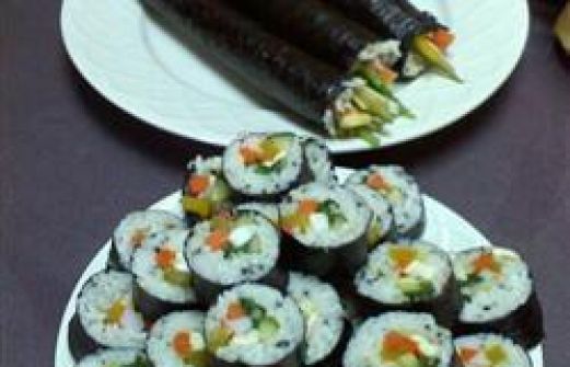 Portionen : 4 180 g Sushireis 350 ml Wasser 1 EL Sesamöl Salz 2 Eier, verrührt 4 Blatt Nori (getrocknete Meeresalgen) 1 Salatgurke, in dünne Streifen geschnitten 1 Karotte, gestiftelt 4 Scheiben Scheibletten®, in dünne Streifen geschnitten 4 Scheiben Ko [...]