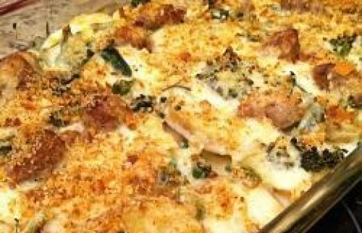 Portionen : 4 50 g Butter 50 g Mehl 600 ml Milch Salz Pfeffer 1 Prise Muskatnuss 3 italienische Bratwürstchen (Salsiccia), in Scheiben geschnitten 5 mittelgroße Kartoffeln, in Scheiben geschnitten 200 g Bimi (chinesischer Brokkoli), grob gehackt 4 EL ger [...]