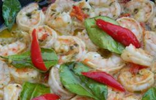 Portionen : 4 Öl zum Grillen 450 g Riesengarnelen 2 EL Öl zum Braten 2 EL fein gehackter Knoblauch 2 EL Zitronengras, in dünne Scheiben geschnitten 5 frische Thai-Chilischoten, in dünne Scheiben geschnitten 1 Schalotte, in dünne Scheiben geschnitten 2 Kaffernli [...]