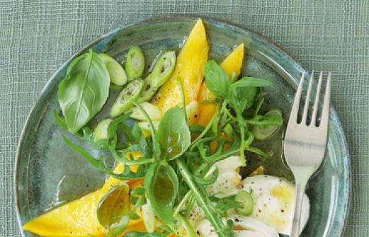 Mozzarella mit Mango und Rucola Zutaten 200 g Rucola 1/2 Bund Basilikum 3 Frühlingszwiebeln 1 reife Mango 200 g Mozzarella 3 EL Orangenessig (oder weißer Balsamico) 2 TL Honig 5 TL Olivenöl Salz schwarzer Pfeffer aus der Mühle 200 g Rucola , 1/2 Bund Basilikum [...]