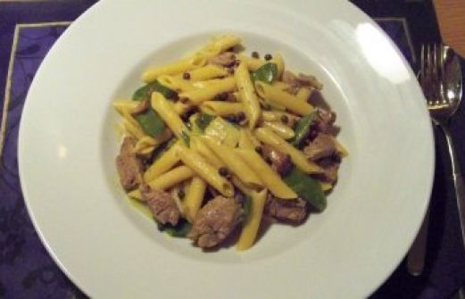 Zutaten für Personen Rezept mit Bild: Geschnetzeltes vom Rind mit Currynudeln.... Bild einstellen 600 gr. Rinderfilet 200 gr. Zuckerschoten 200 ml Sahne 100 ml Gemüsebrühe 100 ml Weißwein halbtrocken [...]