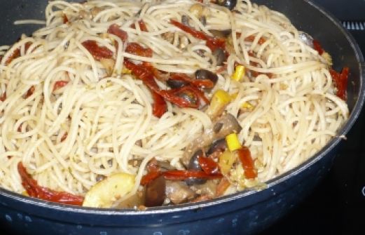 Zutaten für Personen Rezept mit Bild: Spaghetti mit mediteranem Gemüse Bild einstellen 500 Gramm Spaghetti 100 Gramm Tomaten getrocknet 1 Stück Zucchini 1 Stück Aubergine frisch 10 Stück Oliven schwarz [...]