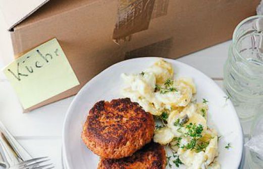 Fleischpflanzerl mit Kartoffelsalat Zutaten 1,2 kg vorwiegend festkochende Kartoffeln Salz 3 Zwiebeln 5 EL Öl 160 ml Gemüsebrühe 3-4 EL Aceto balsamico bianco 4 Gewürzgurken 120 g Salatcreme 2 TL Senf Pfeffer 1 Brötchen (vom Vortag) 400 g gemischtes Hackfleisch 1 Ei 1 B [...]