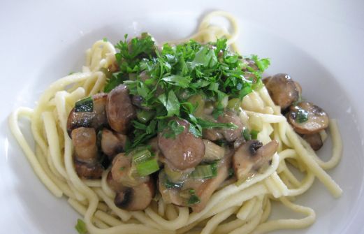 Gibt's bei uns wenns mal wieder schnell gehen muss. Für zwei: 250g Spätzle (Demeter) 250g braune Champignons 3-4 Lauchzwiebeln 1EL Sojasoße 1/2Pck. Hafercuisine Salz, Pfeffer, Muskatnuss Die Spaätzle in reichlich Salzwasser garen. Pilze putzen, schneiden und in 2EL Öl anbrat [...]