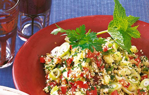 Taboulé Zutaten 150 g feiner Bulgur Salz Pfeffer 1 Bund Frühlingszwiebeln 2 Fleischtomaten 1/2 Salatgurke 1 Bund Petersilie 1/2 Bund Minze 5 EL Zitronensaft 3 EL Olivenöl je 1/4 TL Kreuzkümmel- und Paprikapulver, edelsüß guk:similarity-keywords=""> 150 g feiner B [...]