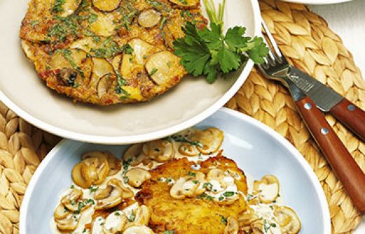 Rösti mit Pilzragout Zutaten 750 g fest kochende Kartoffeln 1 Zwiebel Salz Pfeffer 2 EL Butterschmalz 1 Zwiebel 400 g Champignons 1/2 Bund Petersilie 1 EL Butter 50 ml Weißwein (ersatzweise Gemüsebrühe) 100 ml Milch 200 g Sahne Salz Pfeffer guk:similarity-keywo [...]