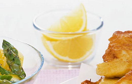 Backfisch mit Spargel-Kräuter-Salat Zutaten je 500 g grüner und weißer Spargel Salz 1 TL Zucker 1 TL scharfer Senf 1/2 TL Honig 3 EL Weißwein- oder Estragonessig Pfeffer aus der Mühle 4 EL Sonnenblumenöl etwas Kerbel oder Kresse 4 Fischfilets (je 150 g, z.B. Rotbarsch, Seelach [...]
