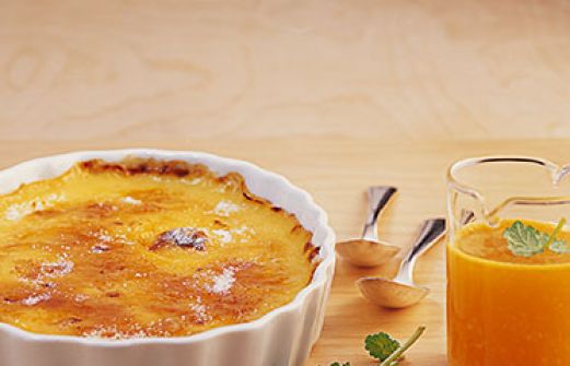 Crème brulée mit Orangensauce Zutaten ½ l Milch 4 Eigelbe 125 g Zucker 60 g Speisestärke 100 ml frisch gepresster Orangensaft 100 g Schmand Butter für die Form 1 Stück frischer Ingwer (ca. ½ cm) 200 ml frisch gepresster Orangensaft 50 g Aprikosenkonfitüre 1 TL Zitronensaft [...]