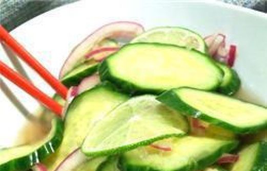 Portionen : 4 2 EL Rotweinessig 4 EL Mirin (japanischer süßer Reiswein) 2 EL brauner Zucker 3 TL geriebener frischer Ingwer 2 EL frischer Limettensaft 1 große Salatgurke, in dünne Scheiben geschnitten 1/2 kleine Zwiebel, in dünne Ringe geschnitten Zub.: 45 Min. [...]