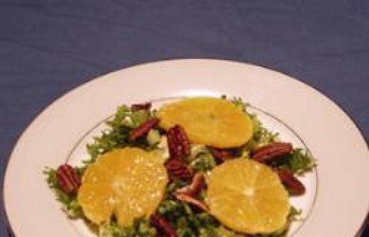 Portionen : 4 50 g ganze Pekannüsse 1 EL Ahornsirup 1 kleiner Endiviensalat, fein geschnitten 2 Orangen 3 EL natives Olivenöl 1 EL Weißweinessig 1 EL Orangensaft Salz frisch gemahlener schwarzer Pfeffer 50 g Gorgonzola, zerkrümelt Zub.: 15 Min. | Kochze [...]