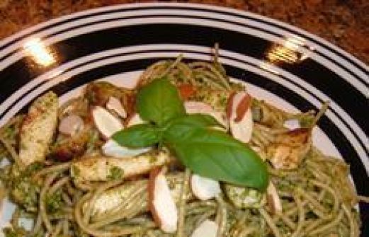Portionen : 6 275 g Vermicelli (Fadennudeln) 2 Knoblauchzehen, fein gehackt 2 EL Olivenöl 2 gekochte Hähnchenbrustfilets, ohne Haut und Knochen, gehackt 225 g Pesto 25 g geröstete Mandelblättchen Zub.: 10 Min. | Kochzeit: 15 Min. 1. Vermicelli nach Packun [...]