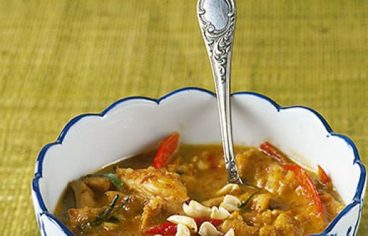 Hähnchen-Erdnuss-Curry Zutaten 100 g Erdnüsse 400 g Hähnchenbrustfilet 10 kleine Kaffir-Limettenblätter 1-2 große rote Chilischoten 2 EL Paenang-Currypaste 1 Dose Kokosmilch (400 ml, ungeschüttelt) 3 EL Fischsauce 1 EL Palmzucker guk:similarity-keywords=""> 100 g Erdnüs [...]
