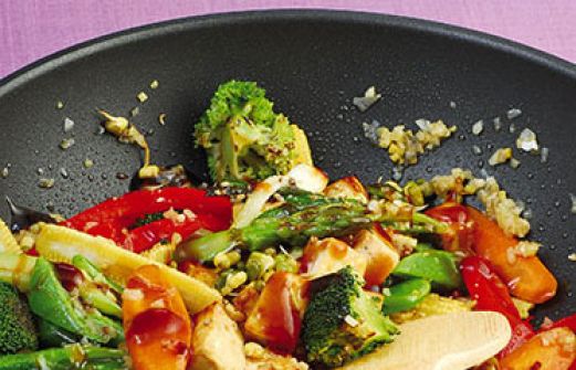 Gemischtes Wok-Gemüse mit mariniertem Tofu Zutaten 300 g schnittfester Tofu 100 ml Gemüsebrühe 3 EL helle Sojasauce 2 EL Austernsauce 2 TL Sesamöl 1 TL Palmzucker (ersatzweise brauner Zucker) Salz Pfeffer 150 g Brokkoli 2 Möhren 8 Mini-Maiskölbchen 6 Stangen grüner Sparge [...]