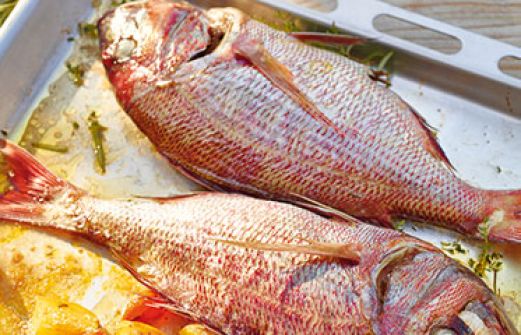 Dorade aus dem Backofen Zutaten 500 g festkochende Kartoffeln 2 EL Kapern (in Salz) 5 Knoblauchzehen 1 kg kleine sonnengereifte Tomaten 1 kleine rote Peperoni 200 g (ligurische) Oliven 6 EL Olivenöl (+ etwas mehr zum Beträufeln) Salz Pfeffer aus der Mühle 4 küchenfertige Do [...]