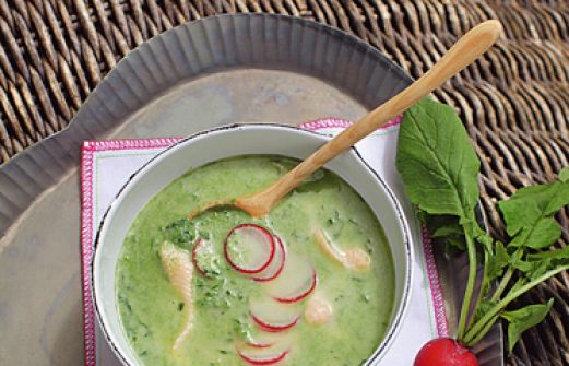 Radieschenblättersuppe mit Saibling Zutaten 200 g Saiblingsfi let (ohne Haut) 1 EL frisch gepresster Zitronensaft Salz Pfeffer 2 große Bund Radieschen mit schönen knackigen Blättern 150 g Sahne 1 Bund Frühlingszwiebeln 1 El Butter 3/4 L Gemüsebrühe 2 sehr frische Eigelb ( [...]