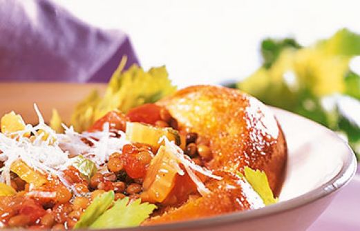Linsensuppe Zutaten 2 Stangen Sellerie 2-3 Zweige frischer Salbei 2-3 Knoblauchzehen 4-6 in Öl eingelegte Sardellenfilets 4 EL Olivenöl 200 g braune Linsen ¾ l Gemüse- oder Fleischbrühe 1 kleine Dose geschälte Tomaten (400 g) schwarzer Pfeffer aus der Mühle Salz 8 kleine S [...]