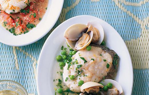 Seehecht mit Venusmuscheln Zutaten 100 g TK-Erbsen 500 g Venusmuscheln 2 Schalotten 2 Knoblauchzehen 1 Bund Petersilie 4 dicke Scheiben Seehecht (à 200 g; quer zur Hauptgräte geschnitten) Salz Pfeffer 4 EL Mehl 6 EL Olivenöl 200 ml trockener Weißwein (ersatzweise Wasser [...]