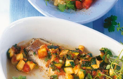Seelachsfilet mit Gemüse-Käse-Kruste Zutaten 2 Seelachsfilets à ca. 200 g Salz Pfeffer 2 EL Olivenöl 500 g Zucchini 1 Bund Frühlingszwiebeln 1 Knoblauchzehe 1 TL Tomatenmark 1 TL getrockneter Thymian 100 ml Gemüsebrühe 120 g Basmati-Naturreis 100 g Mozzarella guk:si [...]