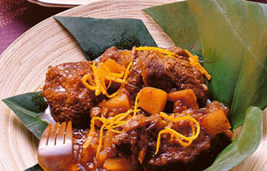 Geschmortes Lammfleisch Zutaten 2 EL getrocknete Mango (Supermarkt, Bioladen, Reformhaus) 750 g Lammkeule ohne Knochen 3 unbehandelte Orangen 2 große Zwiebeln 2 Knoblauchzehen 1 frische rote Chilischote 3 EL Butterschmalz 2 EL Tomatenmark 1 EL Rotweinessig 1 Lorbeerblatt Sa [...]