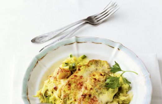 Schnitzeltopf mit Sauerkraut Zutaten 2 Stangen Lauch 2 Zwiebeln 1 Knoblauchzehe 1 säuerlicher Apfel (z. B. Boskop) 100 g geräucherte Schinkenspeckwürfel 1 EL Zucker 1 EL Speisestärke 100 ml trockener Weißwein (ersatzweise Fleischbrühe) 200 g Sahne 200 g Crème fraîche 1/2 T [...]