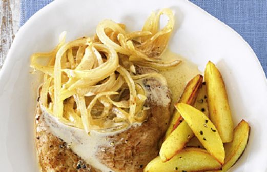 Schnitzel mit Kartoffelspalten Zutaten 800 g festkochende Kartoffeln 4 EL ÖL 4 Schweineschnitzel (à 120 g) 2 Gemüsezwiebeln (ca. 500 g) 100 g Sahne Salz Pfeffer 1 TL Aceto balsamico edelsüßes Paprikapulver guk:similarity-keywords=""> 800 g festkochende Kartoffeln , [...]