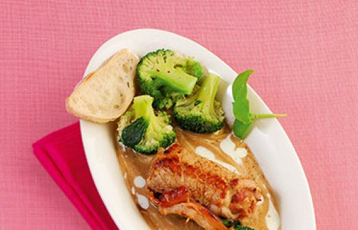 Kalbsröllchen mit Brokkoli Zutaten 4 Kalbsschnitzel (à ca. 120 g) Salz Pfeffer 4 TL Tomatenmark 4 Scheiben Parmaschinken 8 Basilikumblätter 2 EL Olivenöl 400 ml Kalbsfond (aus dem Glas; ersatzweise Hühnerbrühe) 200 g Crème fraîche 600 g TK-Brokkoli 1 EL heller Saucenbinder [...]