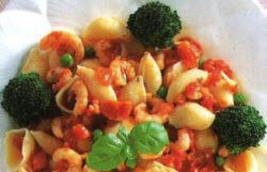 Portionen : 4 4 l Wasser Salz 300-400 g Muschelnudeln 2 Knoblauchzehen 1 EL Olivenöl ¼ TL zerstoßene rote Pfefferschoten 225 g geschälte, gehackte Tomaten (Pelati, aus der Dose) ¼ l trockener Weißwein 1 TL getrocknetes Basilikum, gerebelt 350 g gekochte, geschäl [...]